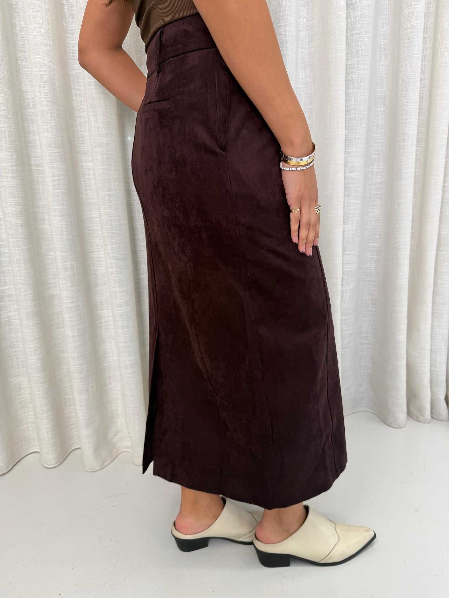 maroon suede skirt